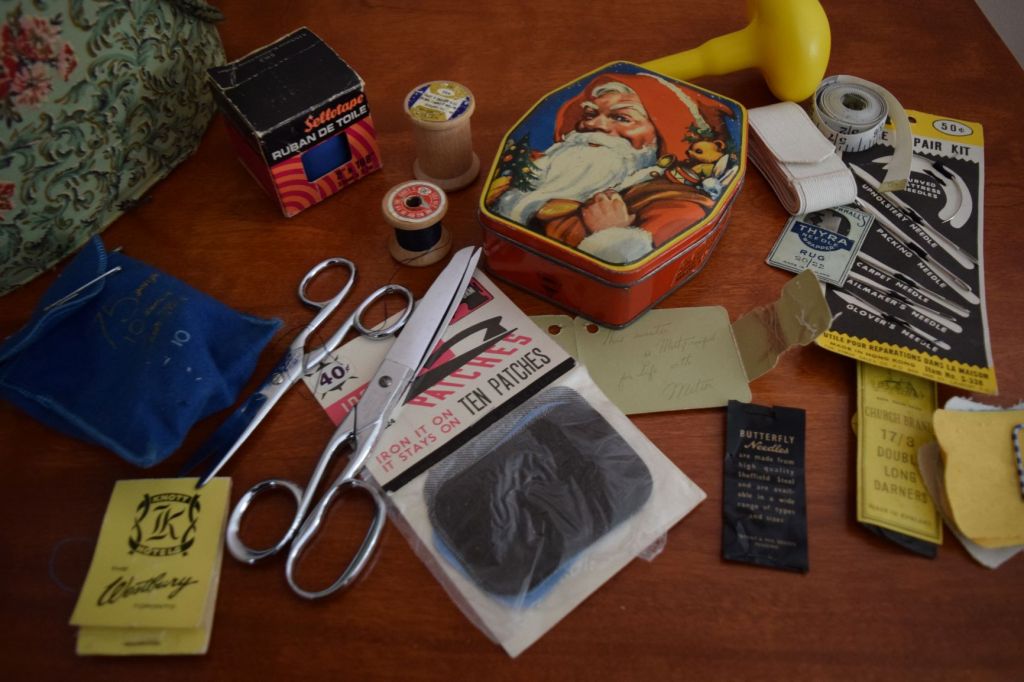 I have an old sewing basket that once belonged to the grandmother of my good friend (the giver). It came with an interesting assortment of things, like yours. And I use old candy tins myself for buttons, safety pins, a plethora of free sewing kits from various hotels. Some of the sewing kits were quite generously appointed, and they do conjure thoughts of the places stayed at.
